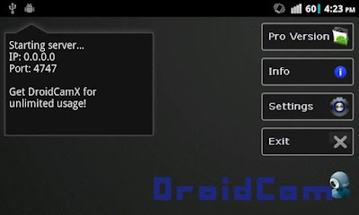 These details will be used below. Keep the application running on your phone, then go and install Droidcam on Ubuntu 12.04/LinuxMint 13 with the following commands: